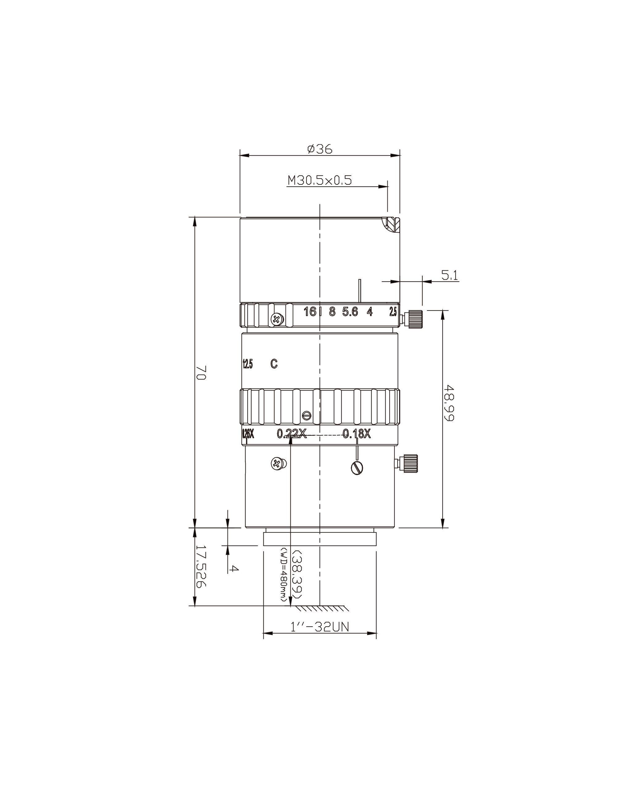 C-mount lens with focal length 75mm, Manual Iris, 2.5, 2MP, 2/3" | ||||||||||||||||